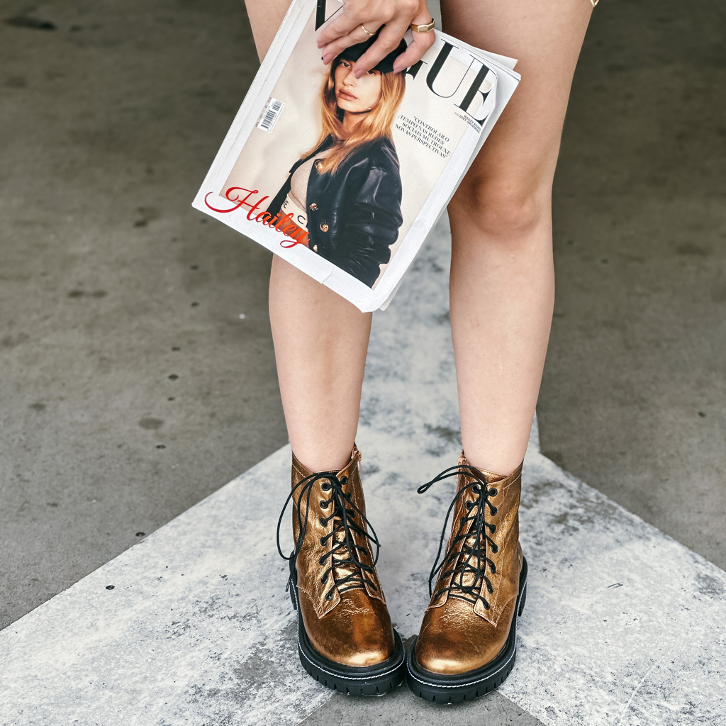 Coturno Penélope em Couro: O poder do metalizado com estilo! Quer um coturno que brilha mais que sua ideia na reunião? Esse modelo em couro metalizado vem com cadarço e fechamento lateral com zíper para facilitar a vida – porque ninguém merece perder tempo com sapato difícil!Leve, resistente e cheio de atitude, é perfeito para quem quer pisar firme e com muito estilo. Invista no Coturno Penélope e arrase por aí com conforto e charme!